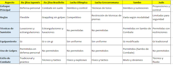 Comparativa entre Jiu-jitsu Japonés, Jiu-jitsu Brasileño, Lucha Olímpica, Lucha Grecorromana, Sambo y Judo: Diferencias Clave y Características Principales