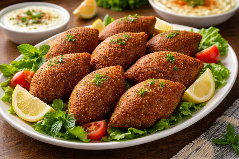 Fríe los Kibbeh en pequeñas tandas hasta que estén dorados y crujientes. Retira y escurre en papel absorbente.